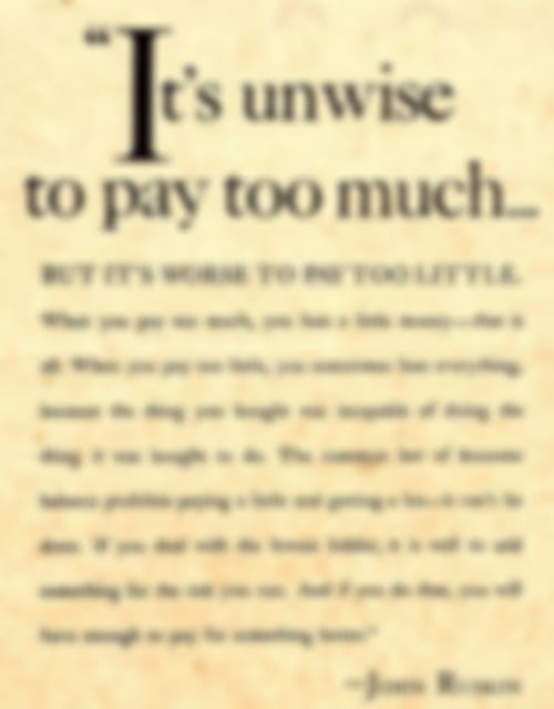 „Es ist unklug, zu viel zu bezahlen, aber es ist noch schlechter, zu wenig zu bezahlen.